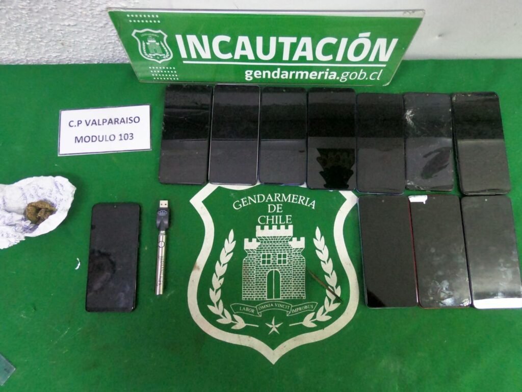 Entre los objetos incautados se contabilizaron 64 armas blancas de fabricación artesanal, 35 teléfonos celulares, dos bolsas con una sustancia vegetal de color verde y 55 envoltorios de papel que contenían, aparentemente, cannabis sativa y clorhidrato de cocaína.
