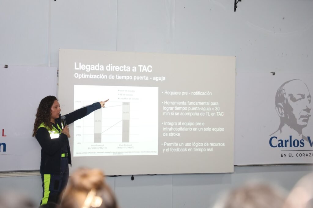 La Dra. Gabriela Hidalgo, jefa técnica del SAMU Litoral, destacó el rol fundamental del sistema de emergencia en la atención del ACV. “Nuestro objetivo es garantizar que los pacientes con sospecha de ACV lleguen rápidamente a un centro especializado para reducir las secuelas”, afirmó. Además, explicó que existen protocolos específicos que se activan cuando no hay neurólogo disponible, permitiendo el traslado inmediato a otro hospital bajo la Ley de Urgencia.