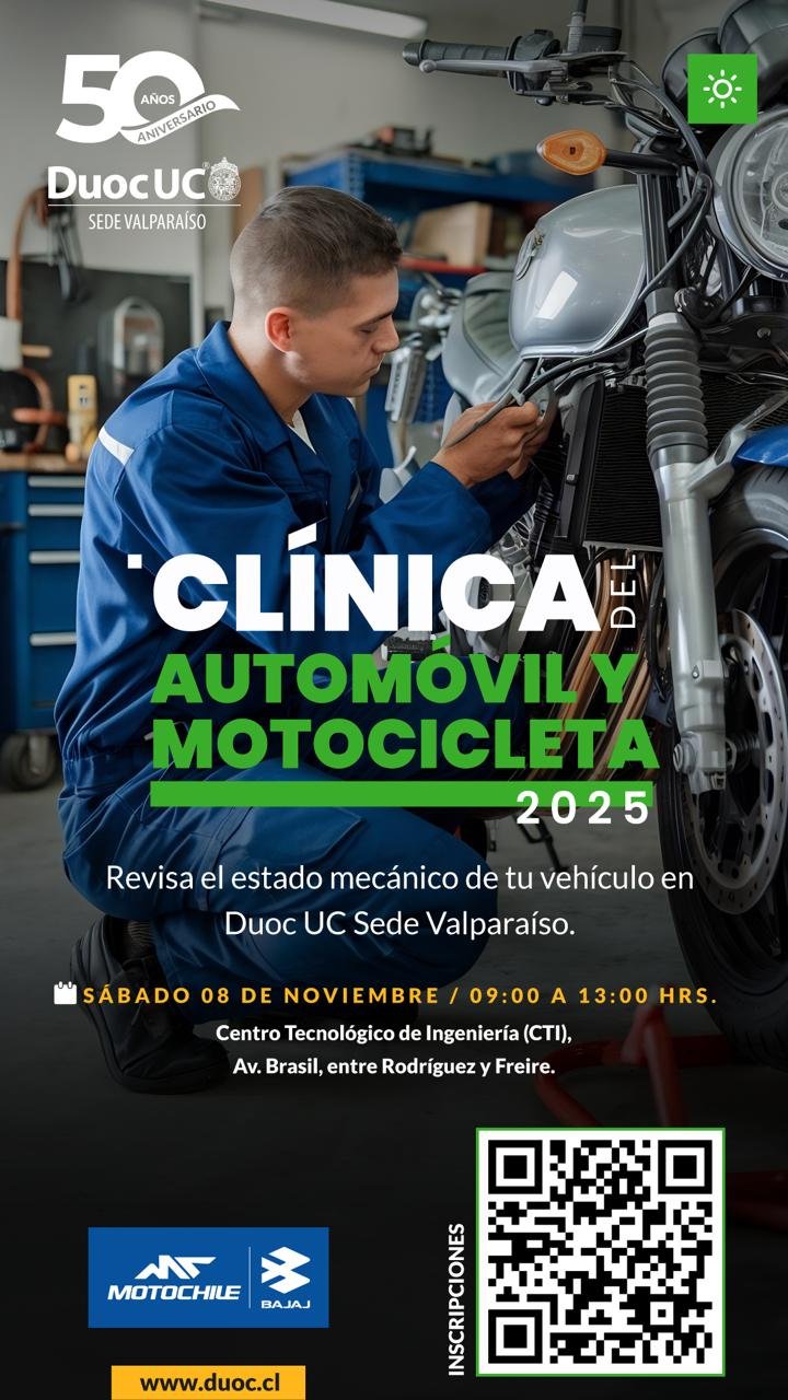Este sábado 8 de noviembre, los motores rugirán con más seguridad en Valparaíso. El Centro Tecnológico de Ingeniería de Duoc UCValparaíso, abrirá sus puertas para recibir a motociclistas de toda la región en una jornada gratuita de revisión técnica y asesoría mecánica. Se trata de la esperada “Clínica de la Motocicleta”, una iniciativa impulsada por estudiantes y docentes de las carreras de mecánica automotriz y autotrónica, que busca entregar un servicio de calidad a la comunidad y, al mismo tiempo, fortalecer el aprendizaje práctico de los futuros profesionales del rubro.