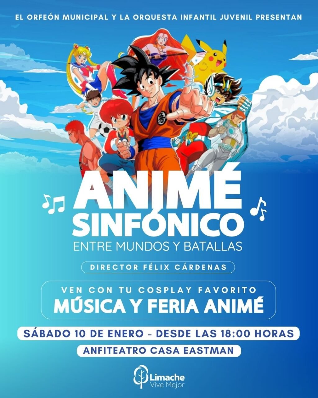 La ciudad de Limache vivirá un evento único este sábado 10 de enero. La Orquesta Infantil Juvenil y el Orfeón Municipal presentarán un concierto sinfónico inspirado en animaciones japonesas. La cita será en la Casa Eastman desde las 18:00 horas y la entrada es gratuita.