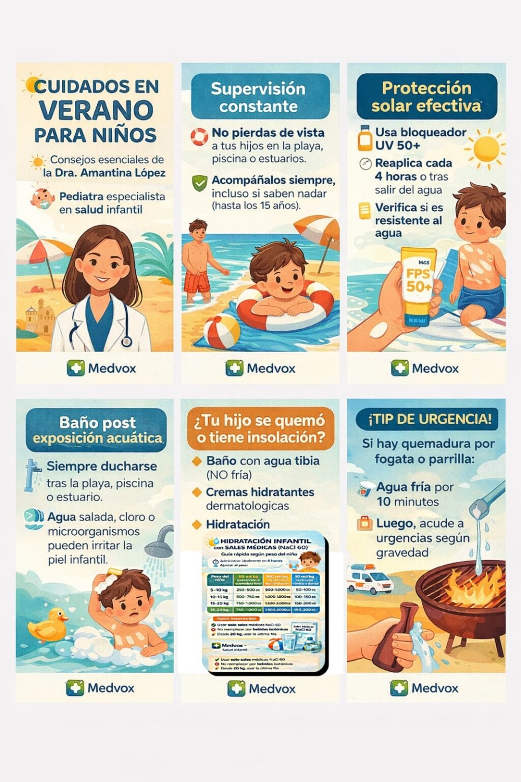 El verano suele presentarse como una postal idílica: niños jugando en la piscina, familias reunidas en la playa y tardes interminables de sol. Sin embargo, detrás de esa imagen se esconde una realidad que muchas veces preferimos ignorar: el peligro constante de las quemaduras solares, la insolación y la deshidratación en los más pequeños.