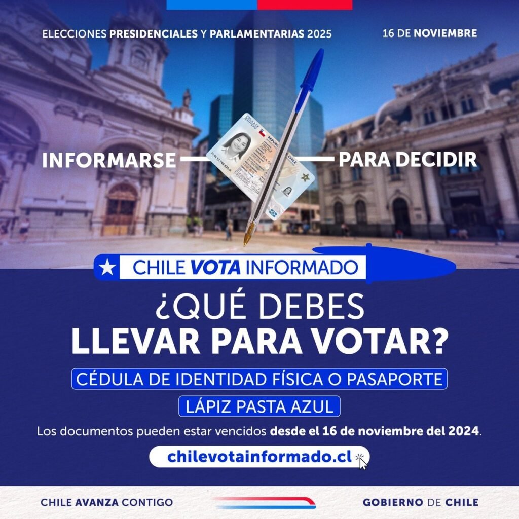 La campaña “Chile Vota Informado” busca que la ciudadanía participe con responsabilidad. En esta jornada regirá el voto obligatorio, por lo que contar con la documentación correcta es fundamental.