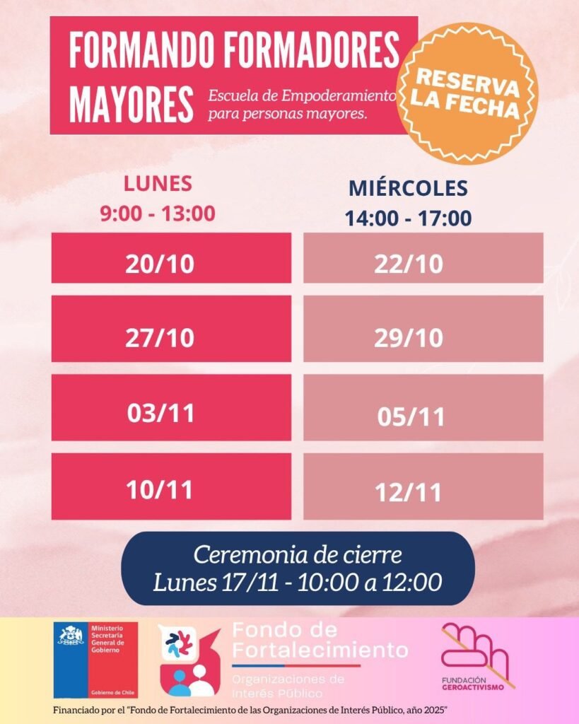 En un país donde el envejecimiento suele asociarse al retiro y la invisibilidad, un grupo de mujeres mayores está dispuesto a cambiar el relato. Desde el lunes 20 de octubre, Viña del Mar será sede de una iniciativa que promete sacudir las estructuras tradicionales de participación comunitaria: la Escuela de Empoderamiento “Formando Formadores Mayores”, impulsada por la Fundación Geroactivismo y financiada por el Fondo de Fortalecimiento de las Organizaciones de Interés Público del Ministerio Secretaría General de Gobierno.