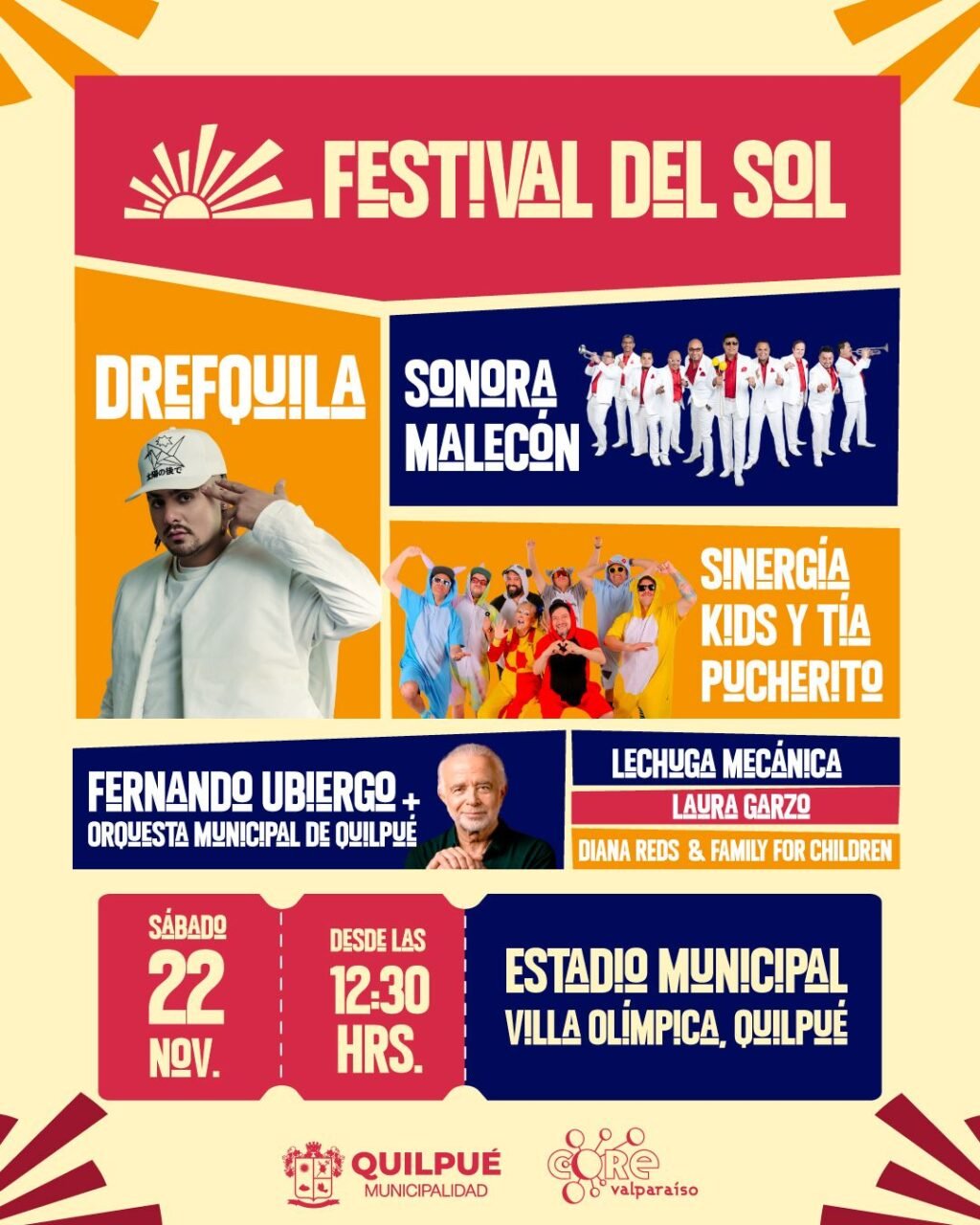 La ciudad de Quilpué se prepara para vivir un acontecimiento histórico. Tras casi cinco décadas de ausencia, el Festival de El Sol regresa con fuerza y promete convertirse en uno de los eventos culturales más importantes de la Región de Valparaíso. La cita será el próximo 22 de noviembre en el Estadio Municipal de Villa Olímpica, donde se espera la asistencia de más de seis mil personas.