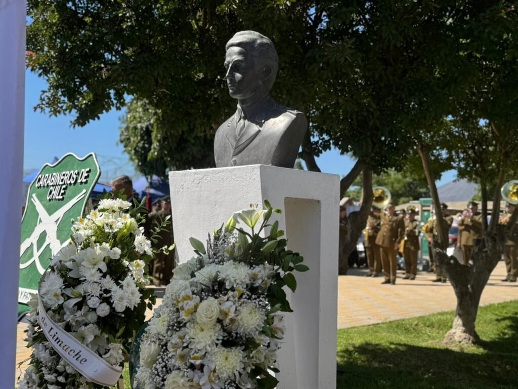 La ceremonia se realizó en el busto ubicado en calle República, donde el alcalde de Limache, Luciano Valenzuela, junto a la Jefe de Zona Valparaíso de Carabineros, General Patricia Vásquez, encabezaron el acto conmemorativo.