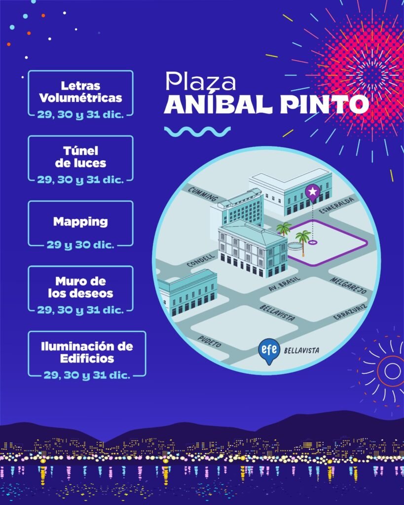 Además del espectáculo principal, la Plaza Aníbal Pinto contará con un túnel led, letras volumétricas y un “Muro de deseos”, donde los asistentes podrán dejar mensajes y parabienes para Valparaíso en la antesala del Año Nuevo.