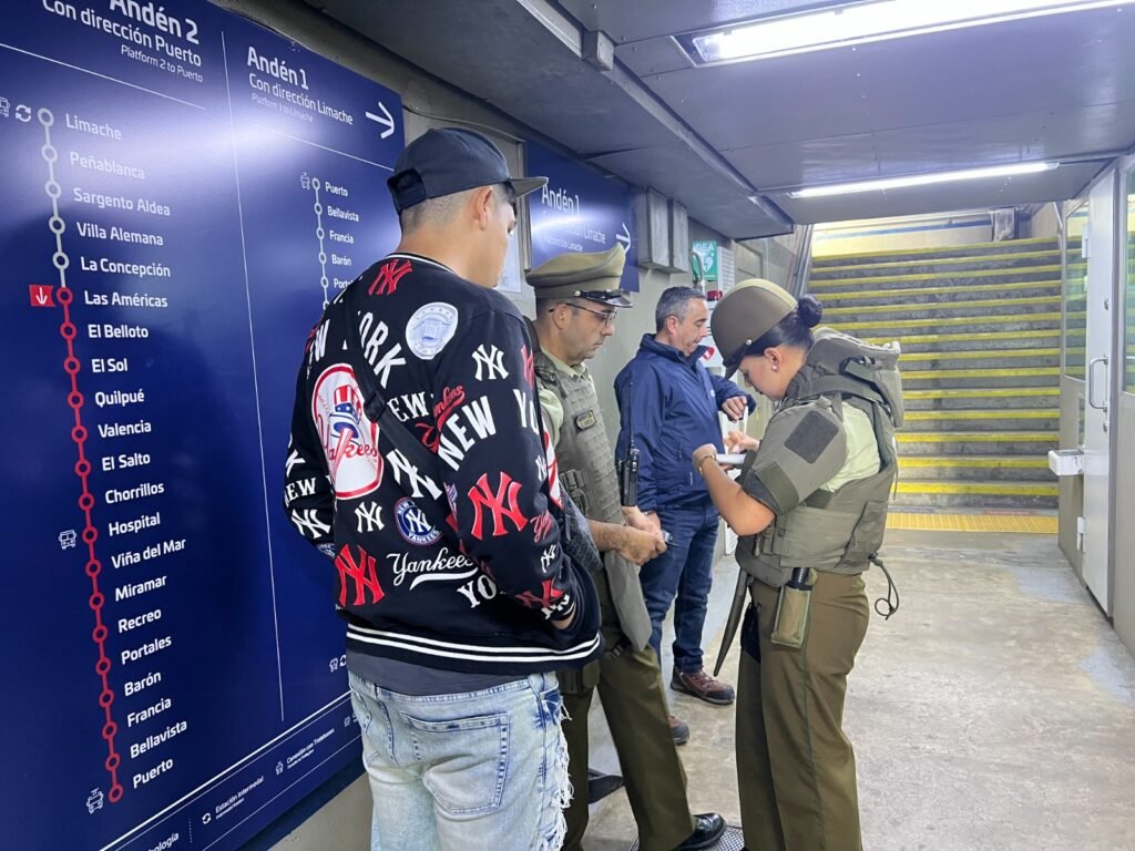 Este jueves, la acción se trasladó a Villa Alemana, donde efectivos policiales, guardias tácticos y vigilantes privados se desplegaron en las cinco estaciones de la comuna. Allí se realizaron controles de identidad, fiscalización de evasión y restricciones a espectáculos artísticos itinerantes, en un operativo que sorprendió a los usuarios por su magnitud.