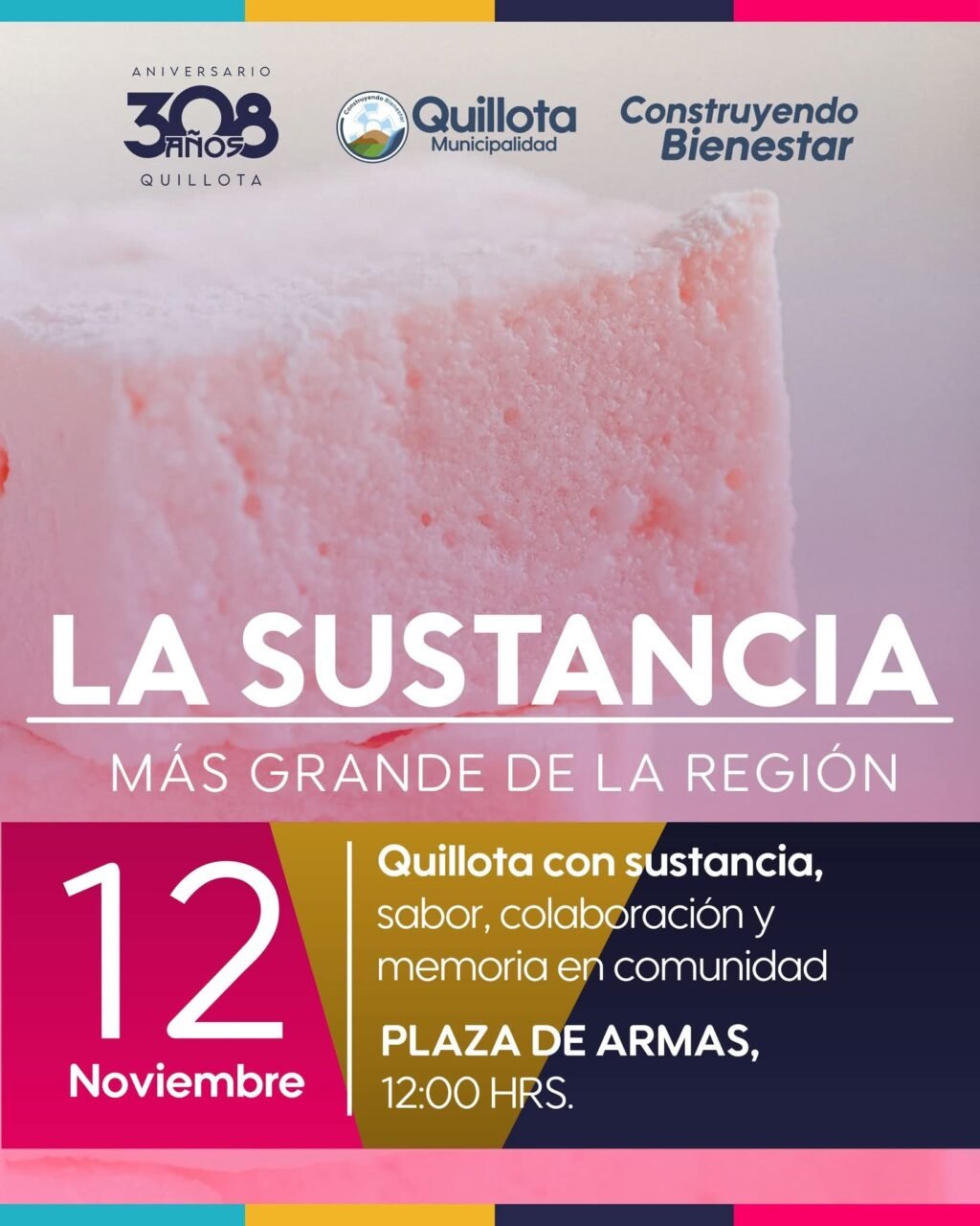 El evento no solo busca sorprender por sus dimensiones, sino también rescatar una tradición profundamente arraigada en la identidad quillotana. La sustancia, ese clásico postre que ha acompañado generaciones, se convierte en símbolo de unión y celebración comunitaria. “La Sustancia Más Grande de la Región” es, además, una invitación abierta a compartir y disfrutar juntos de los 308 años de historia y bienestar de la comuna.